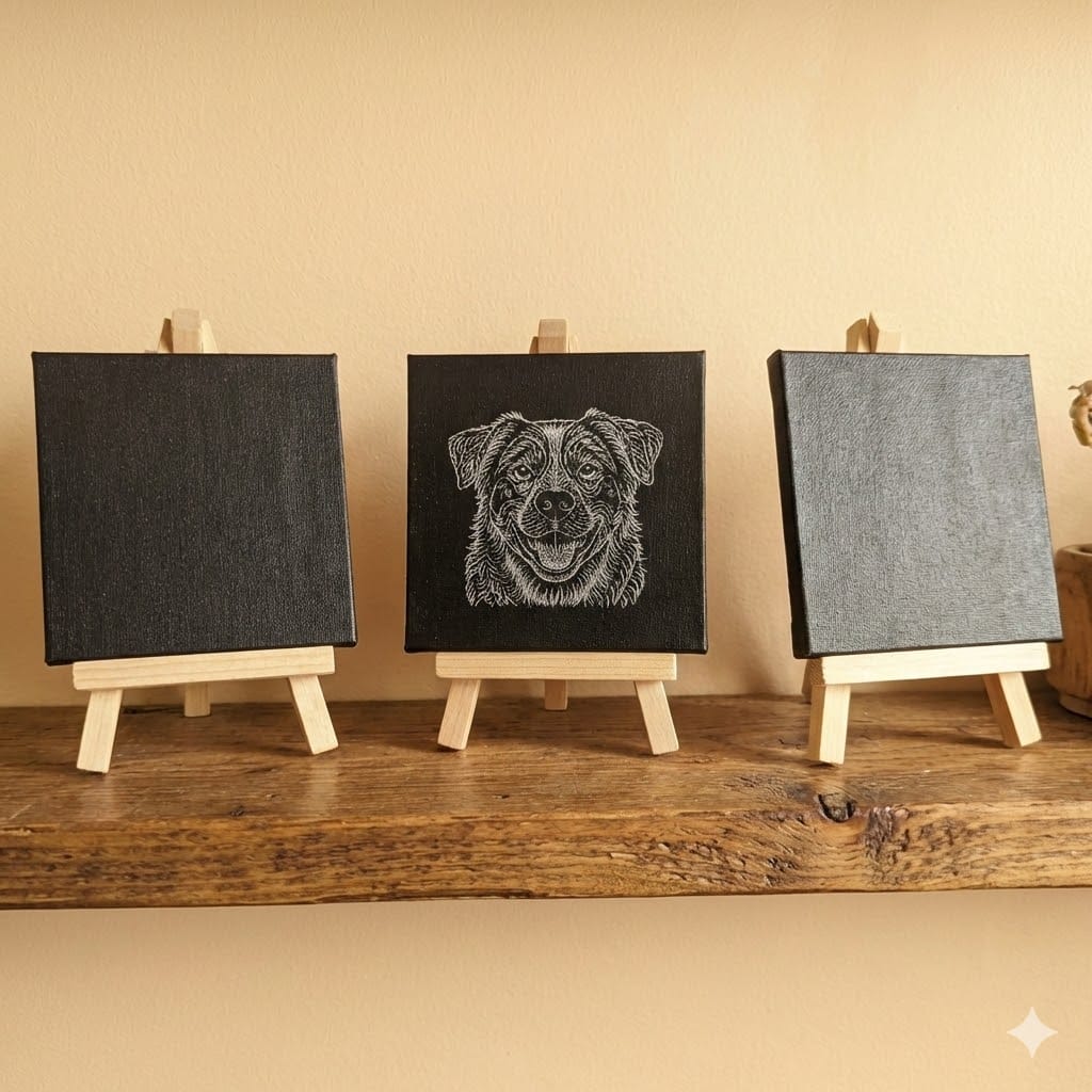 What makes our canvases stand out is the depth of detail. We don’t just engrave a flat surface; each 10x10cm canvas is meticulously prepared with three distinct layers of paint: